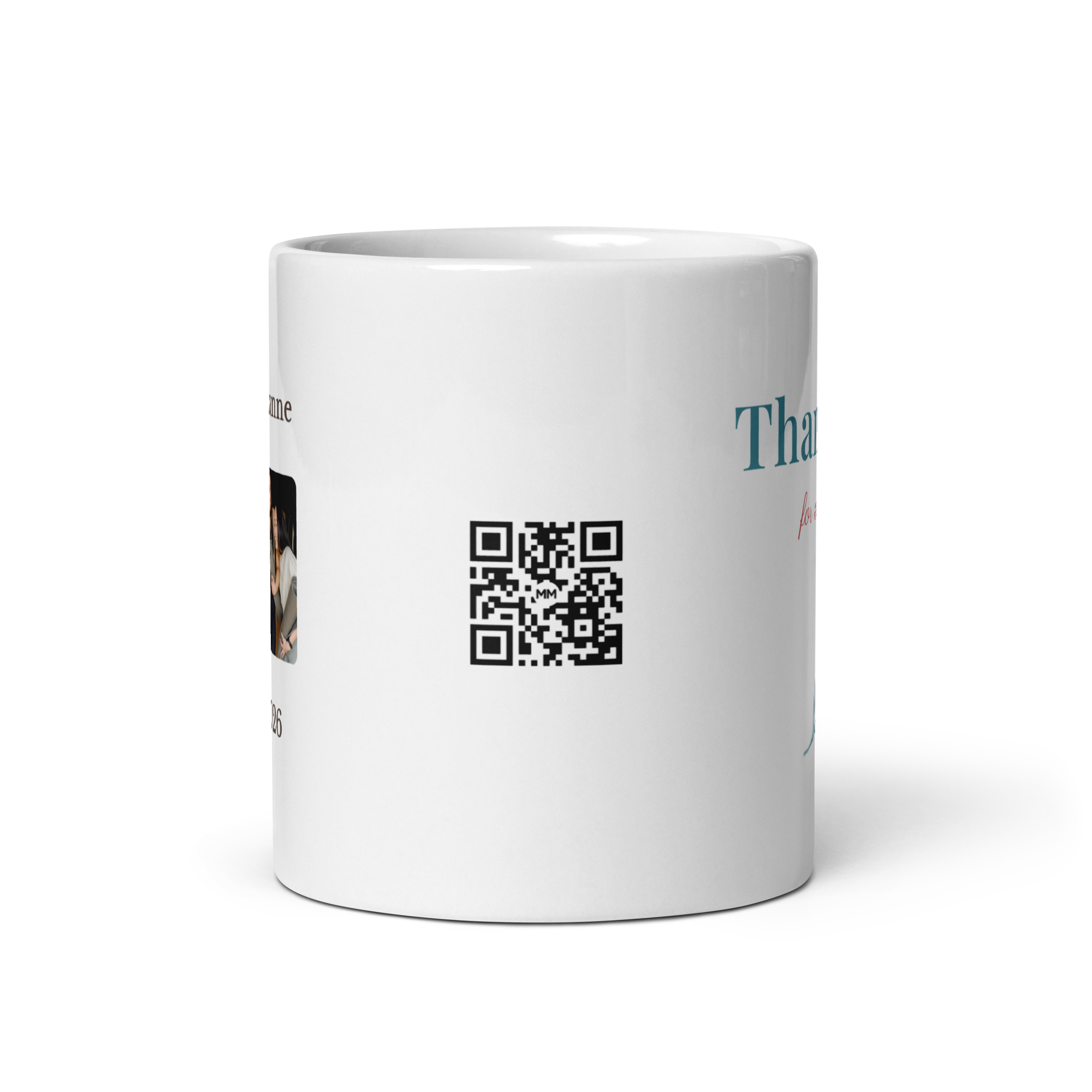 This mug carries a simple message on the outside — Thank You for everything — but with one scan it reveals something far more personal.